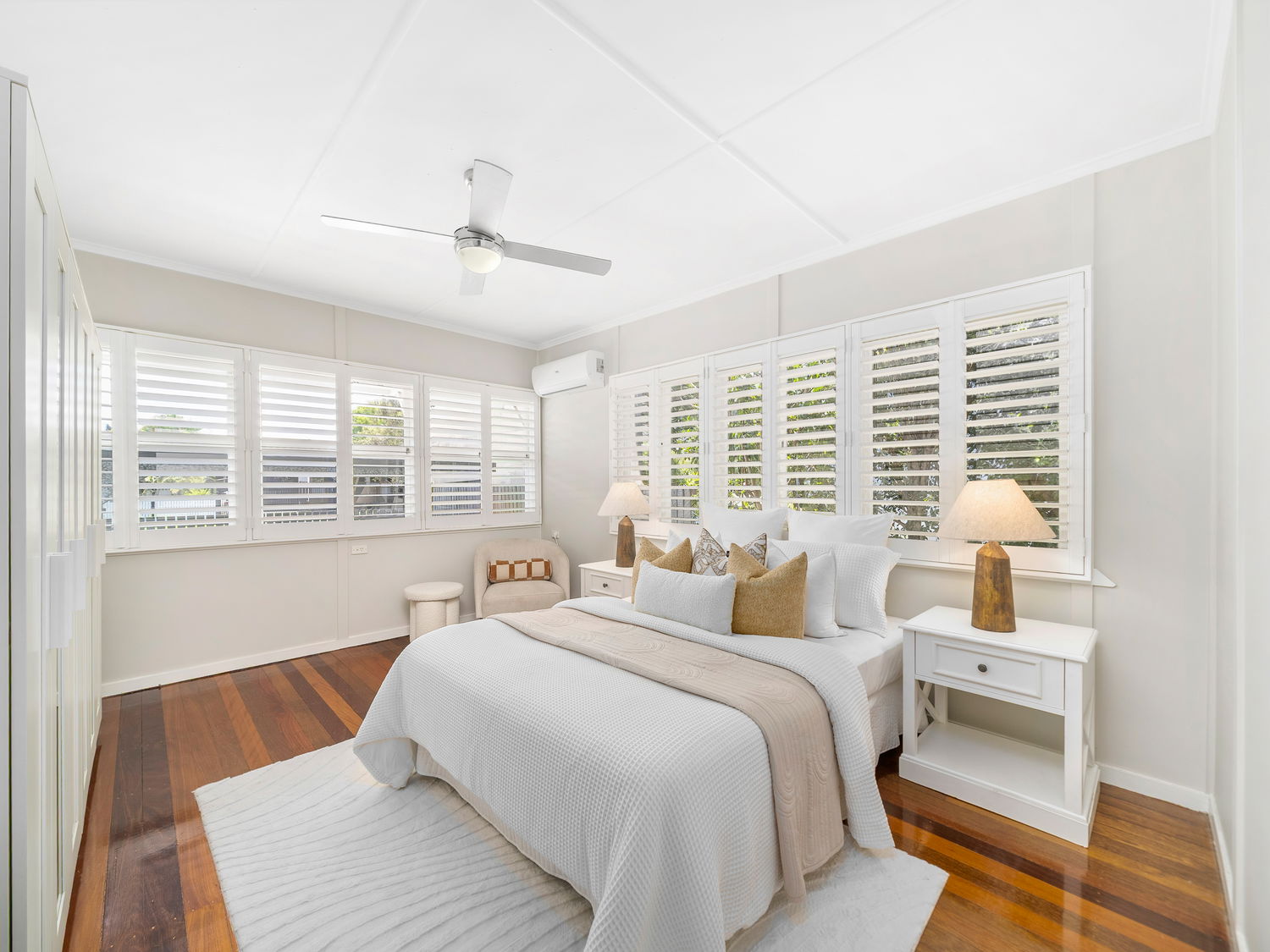 # Main bedroom with ceiling fan, air conditioning and wardrobes