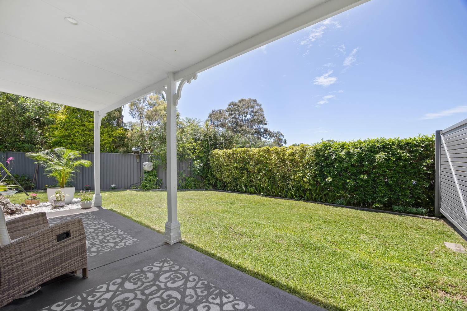 Fully fenced, child-friendly backyard with room to play